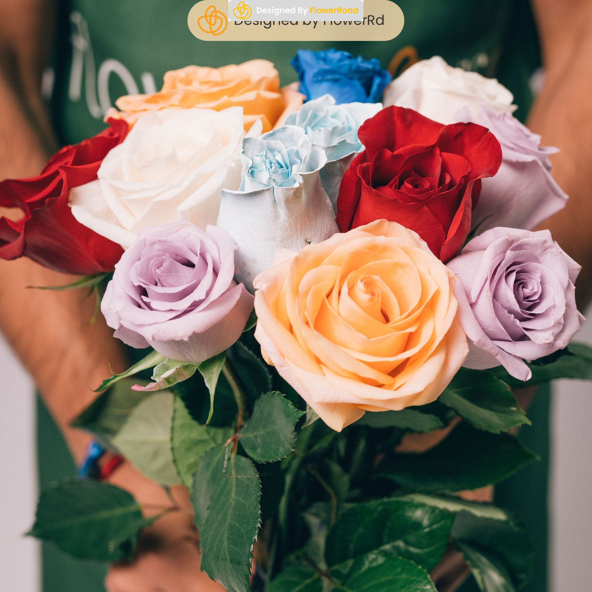 11 mixed roses bouquet with black and gold ribbon is a stunning floral arrangement that combines the beauty of various coloured roses with a touch of elegance and sophistication. The bouquet features a selection of fresh, vibrant roses in different hues, such as red, pink, yellow, or white, and is wrapped with a black and gold ribbon.